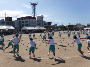 子供たちは、6年生が考えたスローガンの達成を目指して、全力で取り組んでいました。