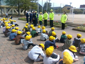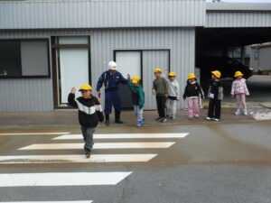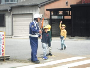 4月17日(金) 1・2年生の交通安全教室が行われました。滑川警察署、市役所、交通安全協会等からたくさんの指導員の方に来ていただき、安全に登下校する練習をしました。