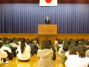 ①1年を振り返り、新しい1年を迎える準備をしてほしい。成長できた自分を自覚して自信をもってほしい。そして、新しい1年の過ごし方や目標を考えることが大事である。
