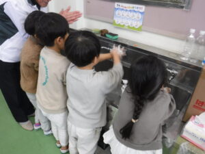 1年生は、1月20日(火)3・4時間目に手洗い講座を行いました。