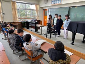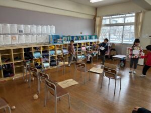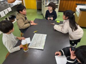 3~6年生がスキー教室の日、1・2年生は、冬となかよし集会をしました。