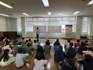 4月13日(金)5年生では、学年集会を開き、新しい学年のスタートにあたって大切にしたいことを全員で確認しました。集会では、5年生が高学年として学校のリーダーとなる学年であることや、下級生の手本となる立場であることについて話をしました。自分のことだけでなく、周りのことを考えて行動することの大切さについて、具体的な場面をもとに考えました。また、学年目標「はあと」についても紹介しました。「は」は判断しよう正しい行動、「あ」は相手を思いやる、「と」はとことん一生懸命取り組むことを表しています。日々の学校生活の中で、これらを意識して行動していくことを確認しました。これから1年間、5年生全員で目標を意識しながら、よりよい学年づくりに取り組んでいきます。